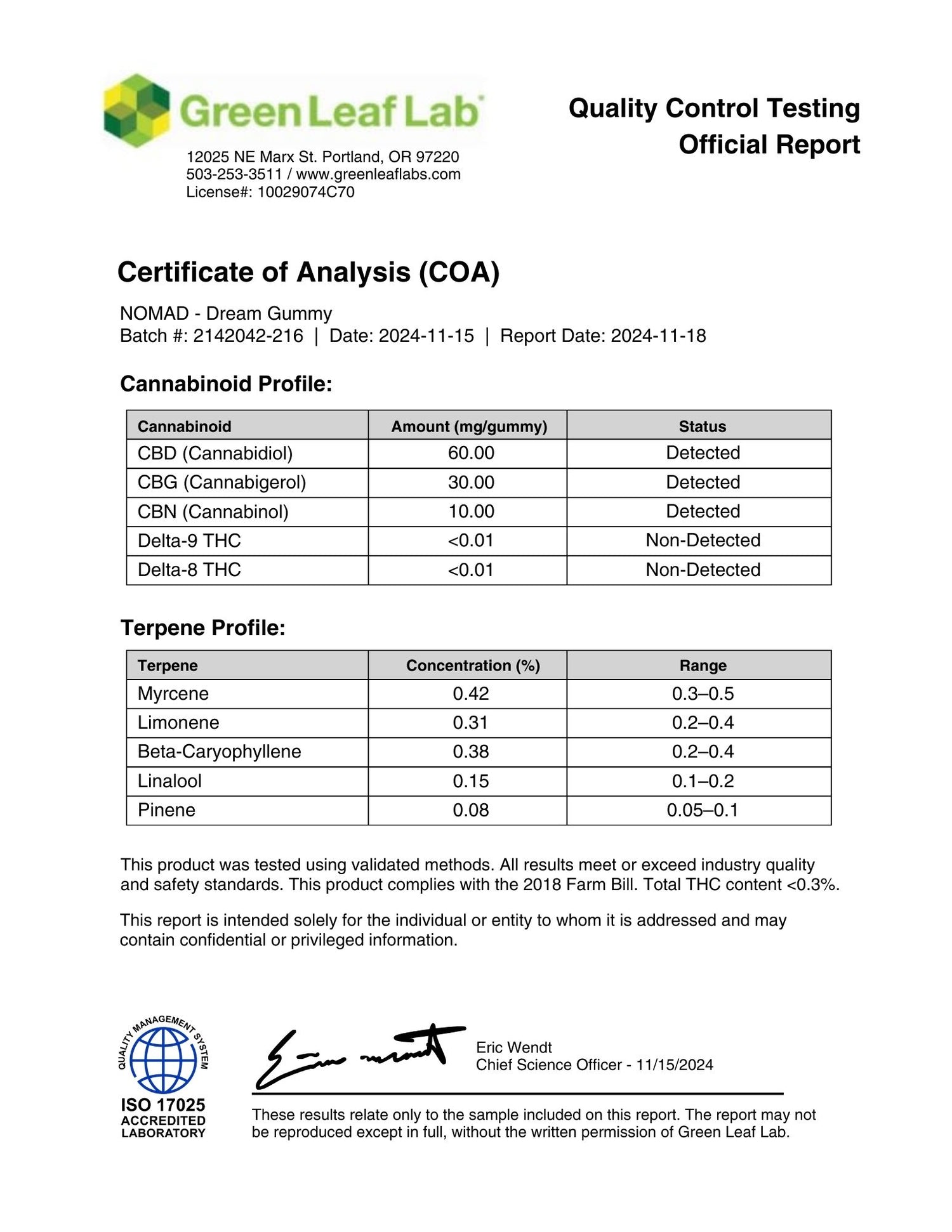 Every batch is third-party lab tested for purity, potency, and safety. We verify exactly what’s in our gummies — and what isn’t. No contaminants, no shortcuts, no mystery ingredients. Just transparent, compliant, high-standard production backed by full Certificates of Analysis so you always know you’re getting a clean, consistent, trusted product.
